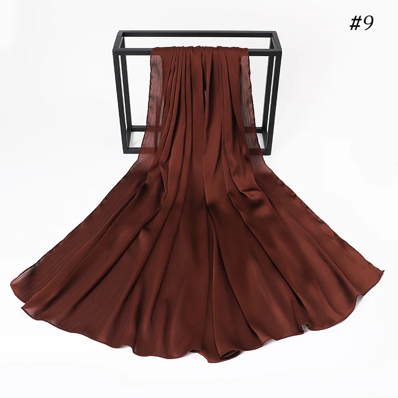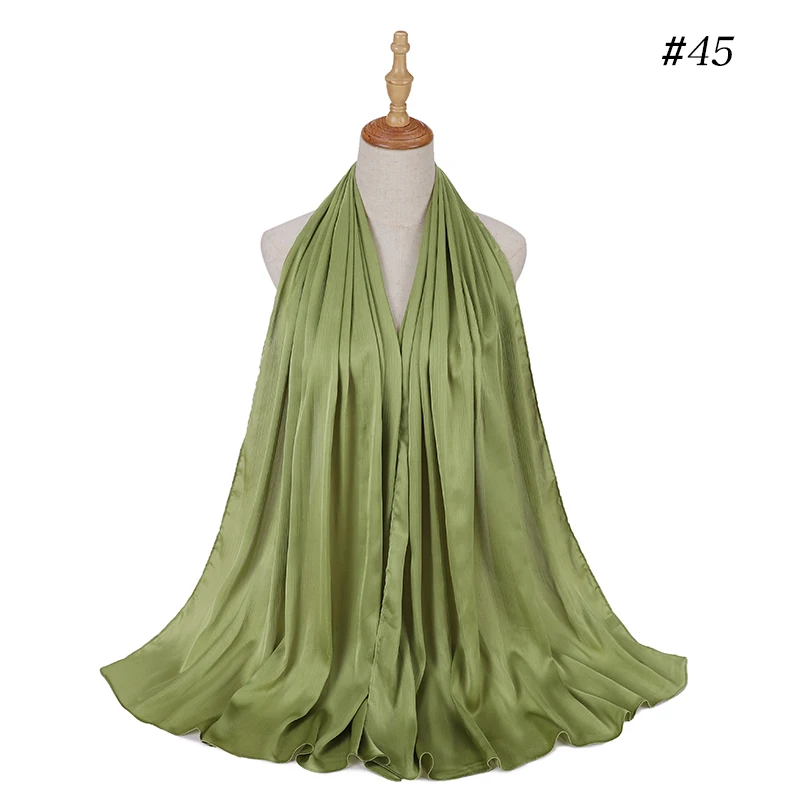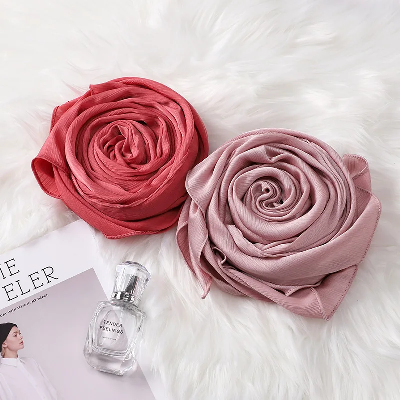 Новые Сатиновые шелковые хиджабы CRINKLED, женские длинные однотонн...