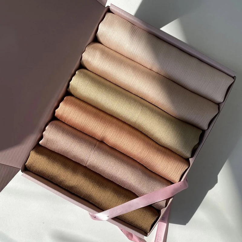 Роскошный хиджаб в подарочной коробке, сатиновые шелковые хиджабы, ...