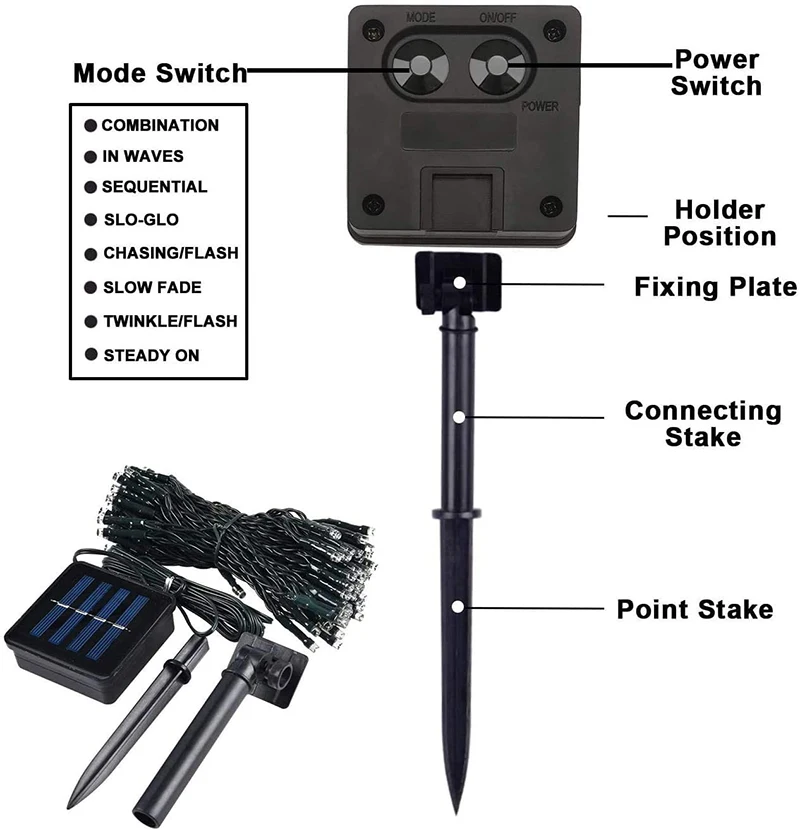 Гирлянда светодиодная на солнечной батарее, 8 режимов работы