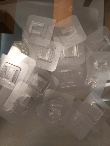 Вместо десяти в довольно таки большой упаковке, оказалось девять и ещё одна покоцанная бэушная половинка (?). Один крючок состоит из двух частей (половинок), какие-то вставляются плотно, а какие болтаются. Какой-то ширпотреб (а чего ещё ожидать) и пофигизм продавца - считать не умеет.
