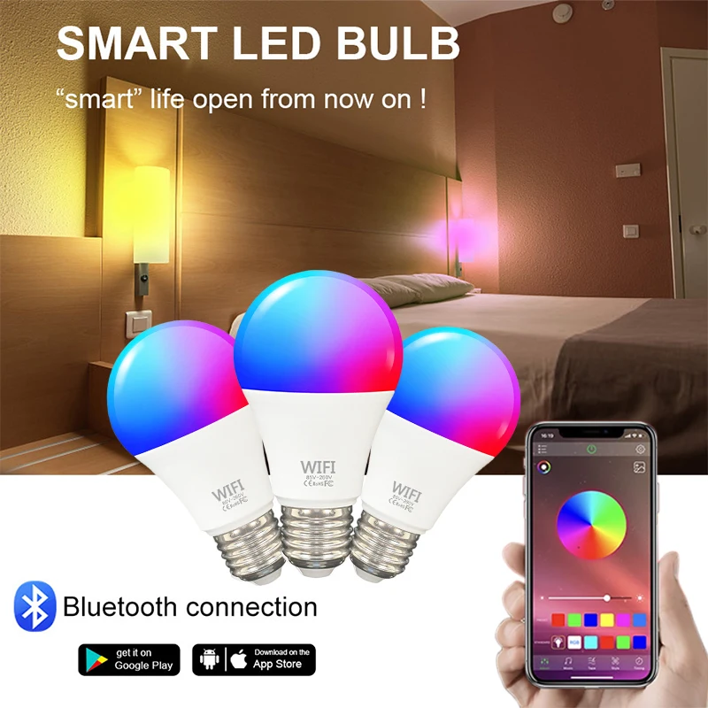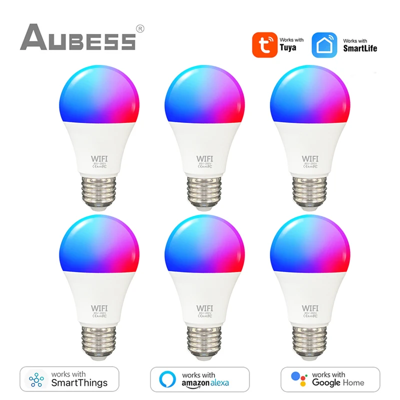 Умная лампа AUBESS Tuya с Wi-Fi, 15 Вт, E27, RGB, с регулировкой яркости