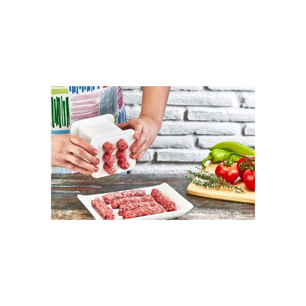 С нашим новым пластиковым Tekirdağ форма для фрикаделек, вы можете легко и быстро формировать ваши фрикаделек, и он мгновенно даст вам форму, которую вы хотите с шестью отдельными кусочками той же части и веса. Кроме того, его легко использовать, так как он очищает кусочки мясного фарша в форме. После того, как фарш приготовлен, вы можете выбрать размер текирдага.