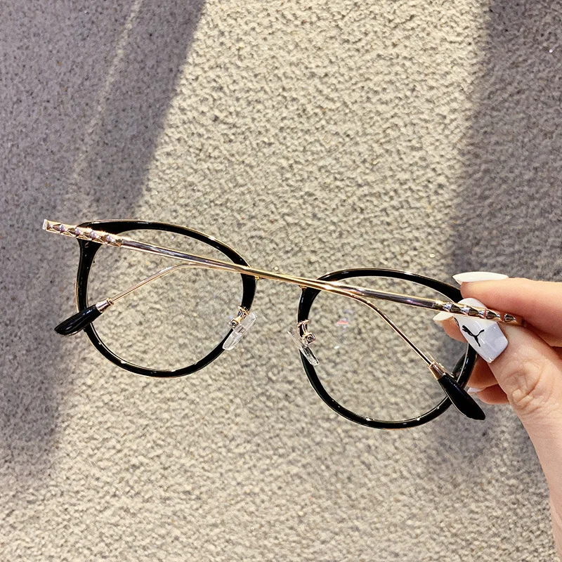 Оправа для оптических очков для мужчин и женщин, аксессуар оверсайз с круглыми линзами, в металлической оправе, для компьютерных игр, искусственное черное стекло