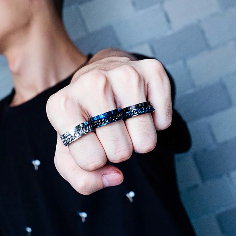 Кольцо-Спиннер мужское с черной цепью, простая открывалка для бутыл...