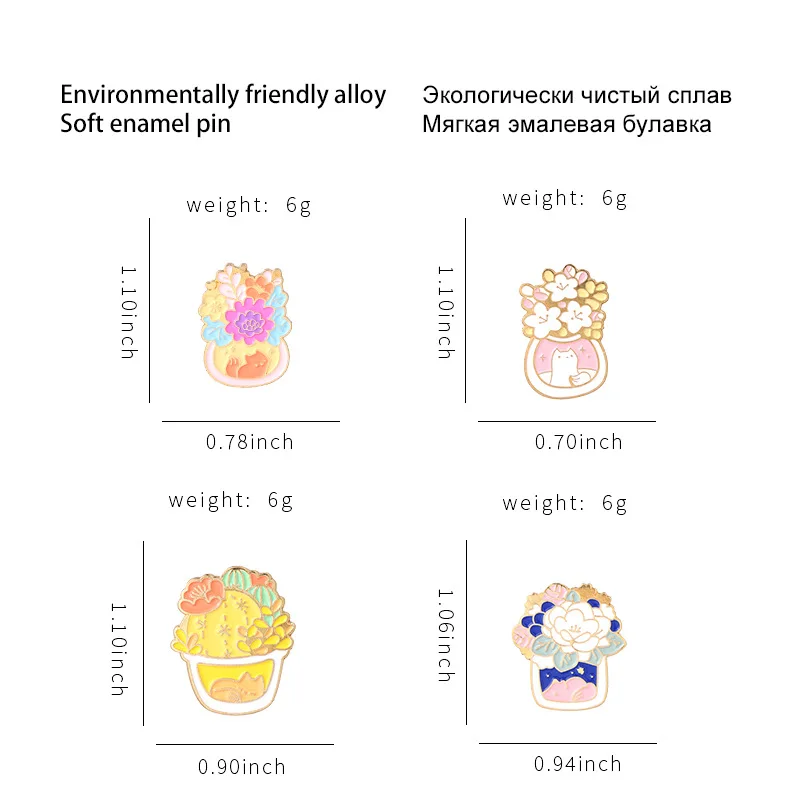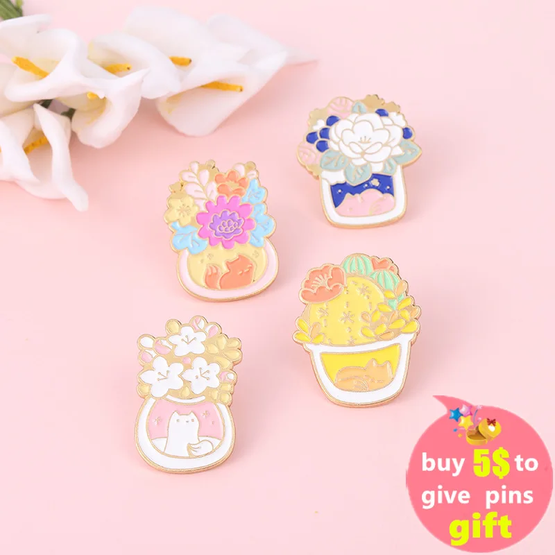 Эмалированная брошь в виде спящего котенка в горшке, оптовая продажа, брошь в виде цветка кактуса, значок на лацкан шляпы, мультяшная булавка, Подарочная бижутерия, оптовая продажа