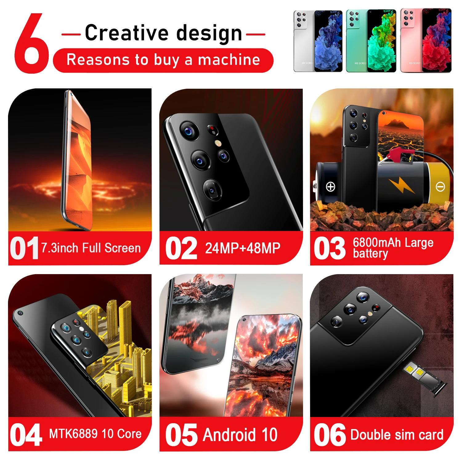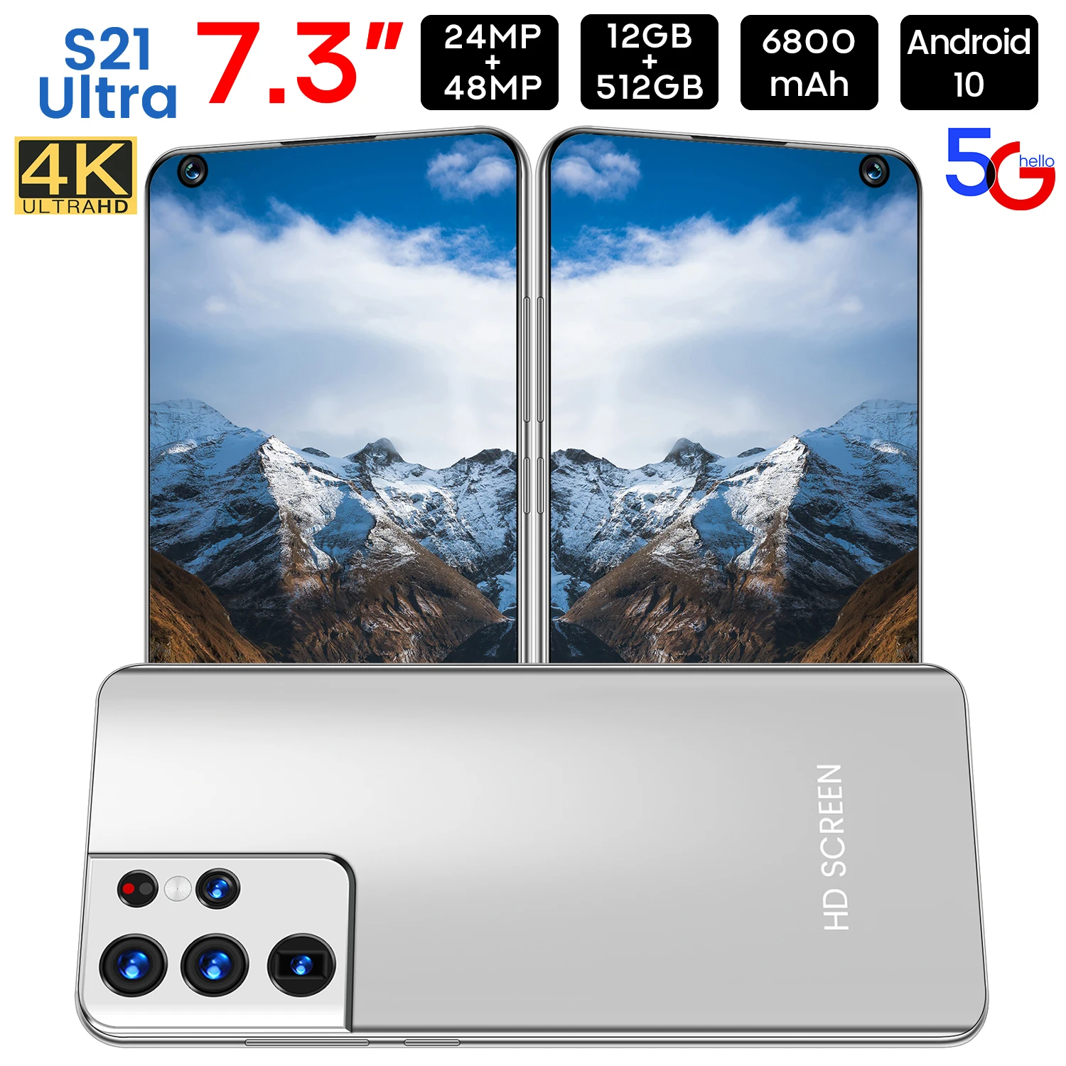 Смартфон S21 Ultra глобальная версия, 7,3 дюйма, 6800 мА ч, разблокировка 48 МП, 16 ГБ, 512 ГБ, сотовый телефон Android 10