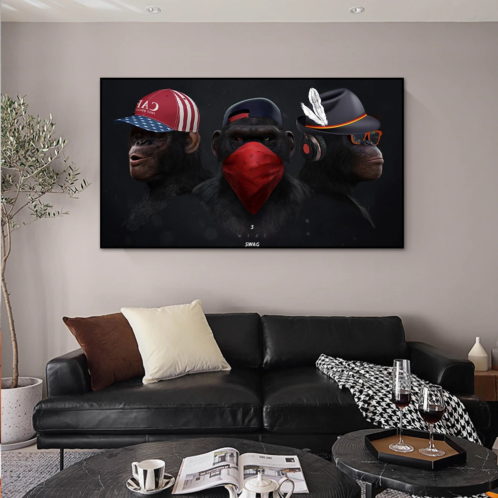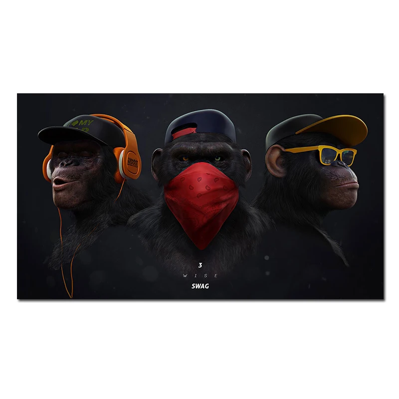 Картина с животными забавные наушники Горилла холст картины маслом настенные художественные плакаты и печать холст печать для украшения гостиной