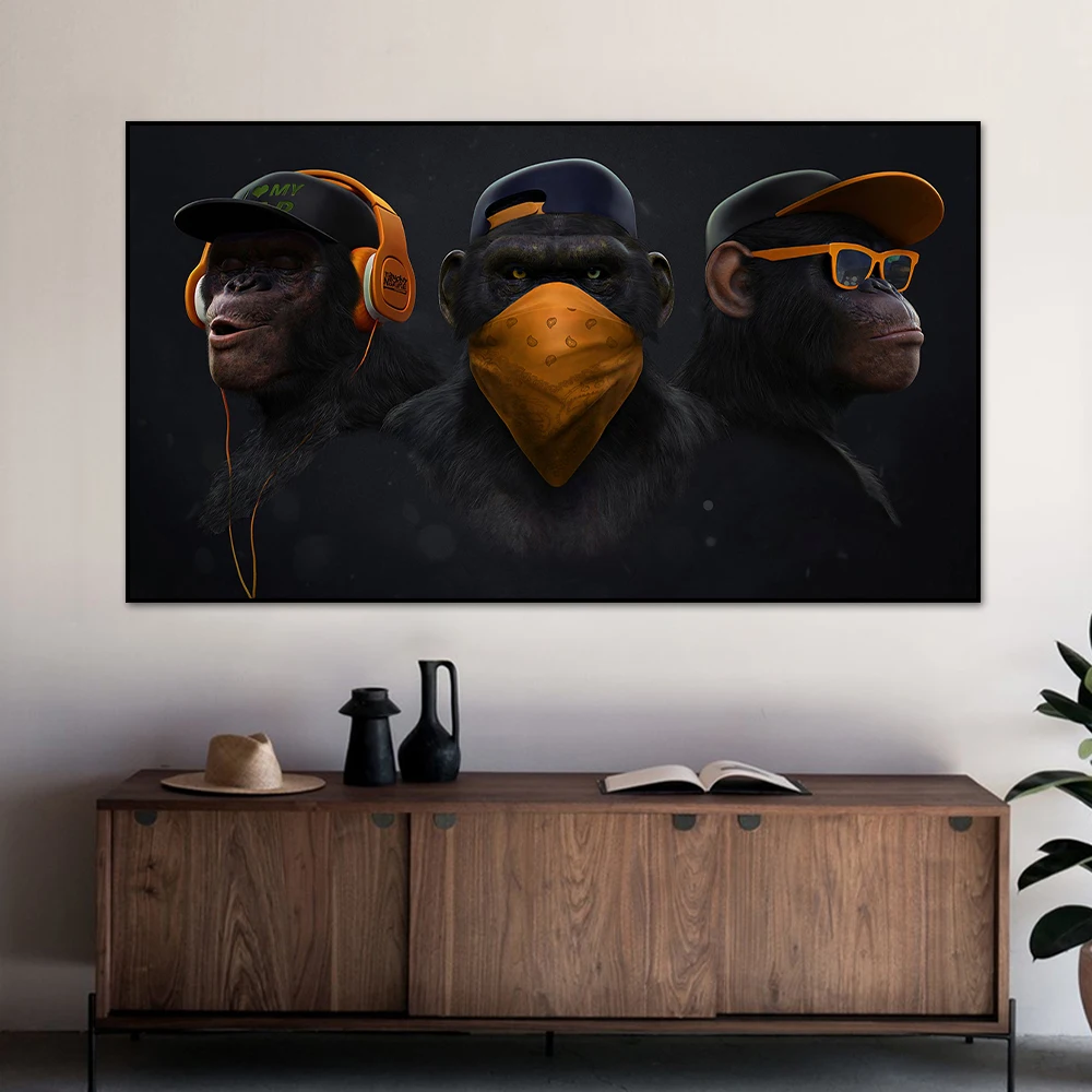 Живопись с животными забавные наушники Gorilla холст картины маслом настенные художественные плакаты и печать на холсте для украшения гостиной