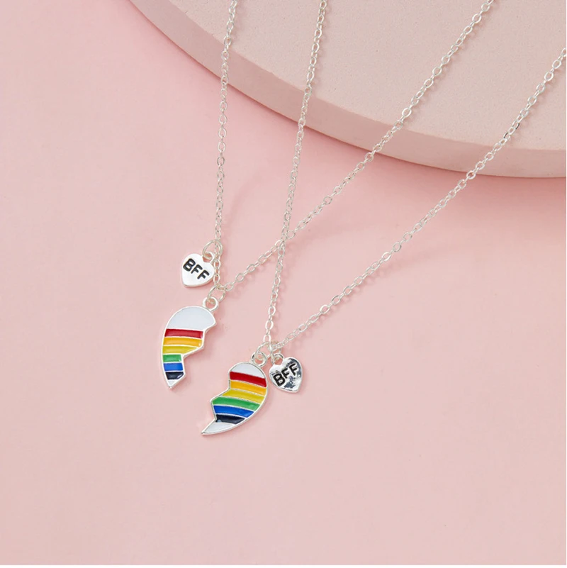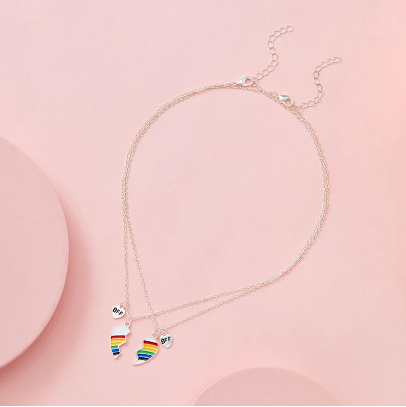 1 пара магнитных ожерелье для пары дружба градиент подвеска в виде сердца с радугой Lgbt ожерелье подарок лучший друг