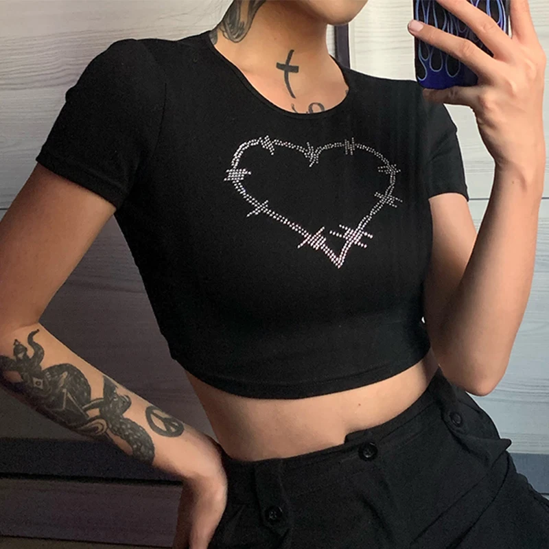 Винтажная коричневая художественная Готическая графическая футболка 90-х Y2K, женский короткий топ в Корейском стиле, футболка с открытыми плечами, уличная одежда, футболка с длинным рукавом