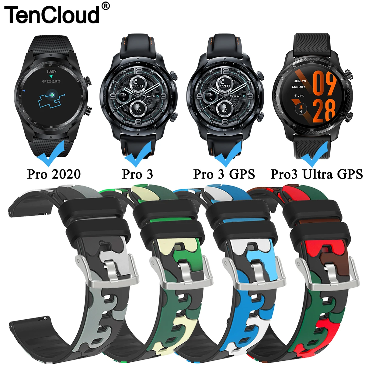 Ремешок Камуфляжный 22 мм для TicWatch Pro 3 Ultra GPS, силиконовый браслет для Ticwatch Pro X 2020Pro 3 LTE GTX E2 S2