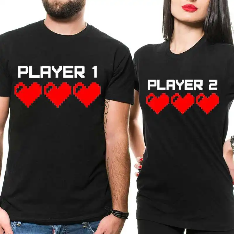 Парные рубашки для игроков 1 игрок 2 Рубашка забавная Harajuku летняя парная футболка для мужчин и женщин подходящая одежда повседневные футболки брендовый Топ