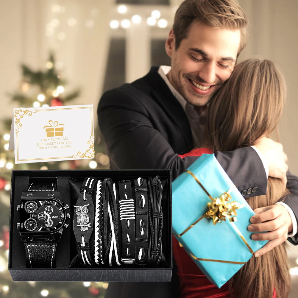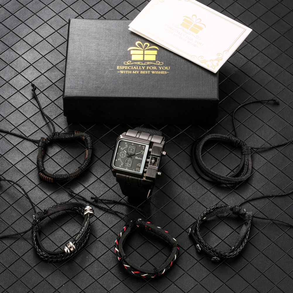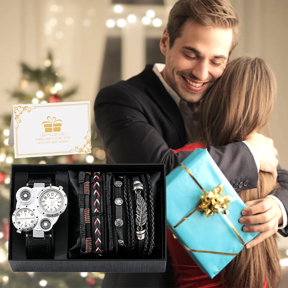 Мужские кварцевые часы с уникальным большим циферблатом, трендовый тканый браслет, изысканный набор, модные деловые наручные часы, подарок для парня или мужа
