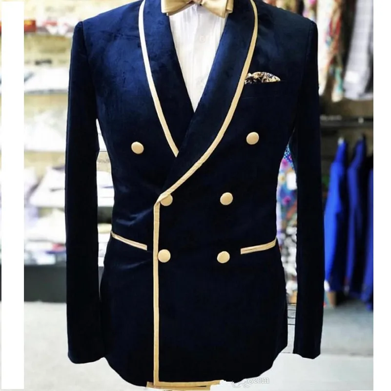 2022 реальные двубортные мужские костюмы с золотой шалью и лацканами Nvay Blue бархатные Свадебные смокинги для жениха мужской блейзер для вечевечерние НКИ деловые костюмы