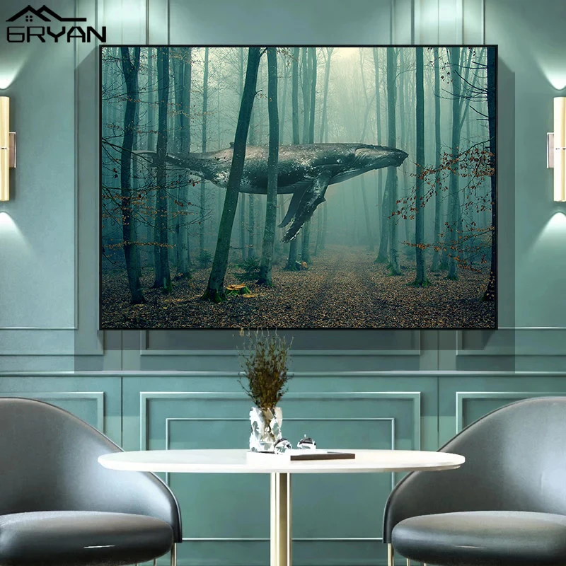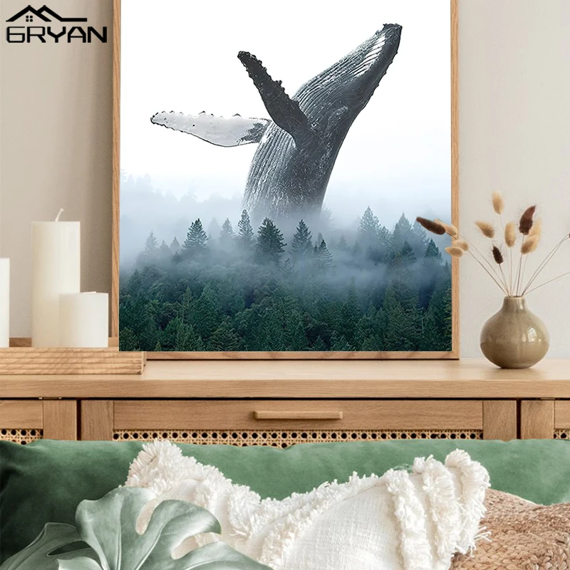 Абстрактный КИТ плакат с принтом в скандинавском лесу деревья весенний пейзаж Картина на холсте креативный домашний Декор картина искусство