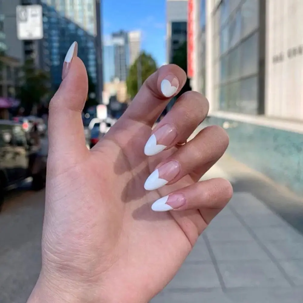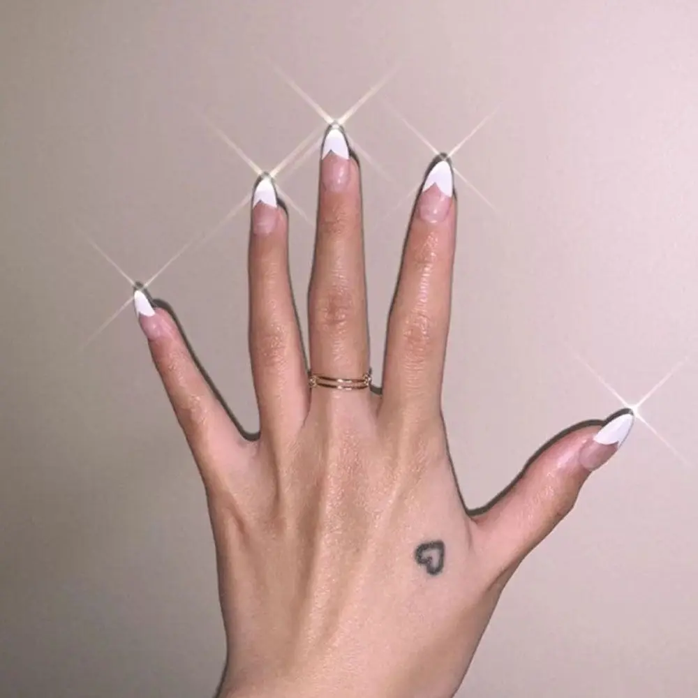 24 шт. Новые Накладные ногти для французского маникюра с белым миндалем акриловые накладные ногти с полным покрытием накладные ногти балерина накладные ногти