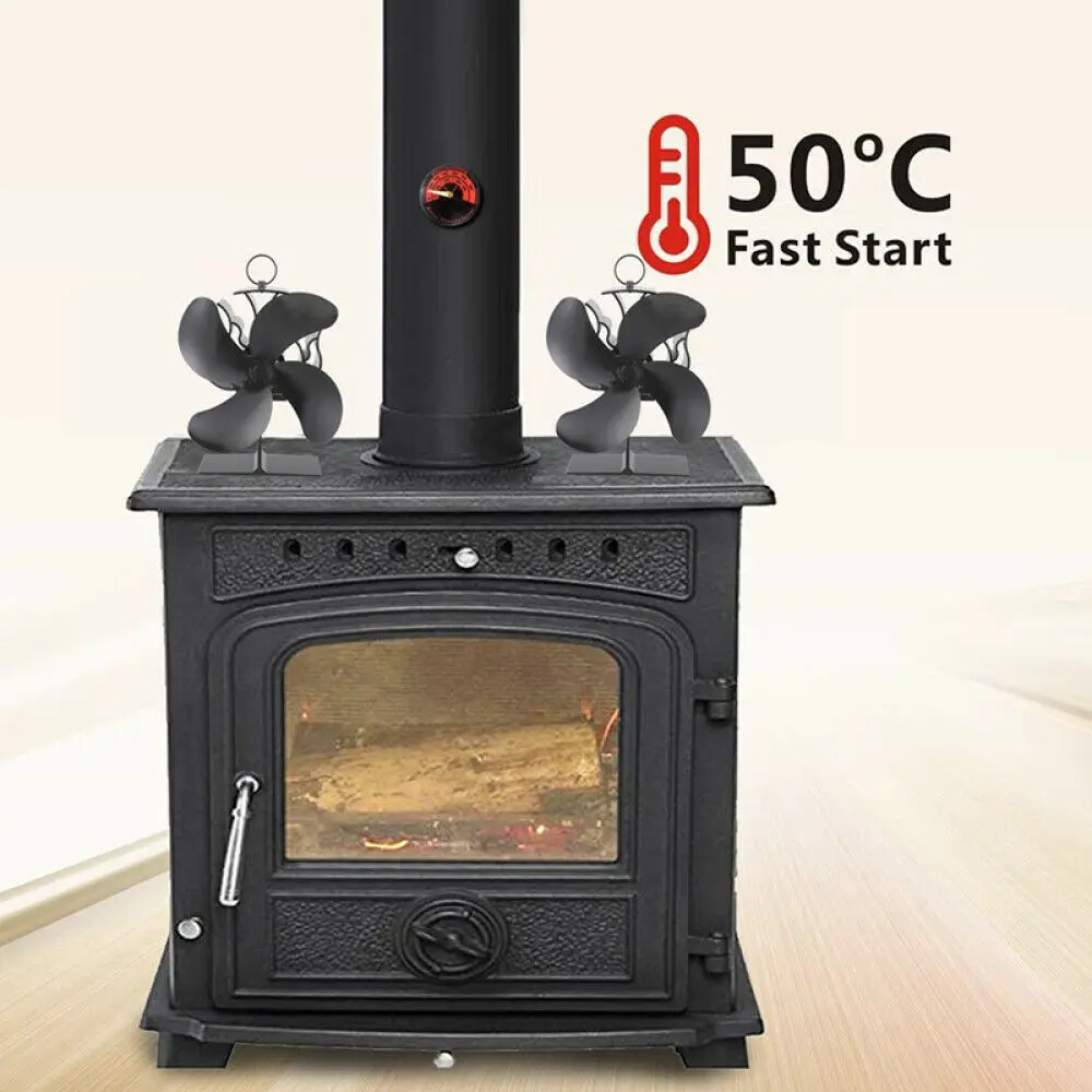 3. Бесшумная работа, распространение тепла вокруг комнаты и повышение температуры с низким уровнем шума, улучшение циркуляции теплого воздуха приводит к большему комфорту и уменьшает потребление древесины из вашей печи. Более стабильная и экологичная защита