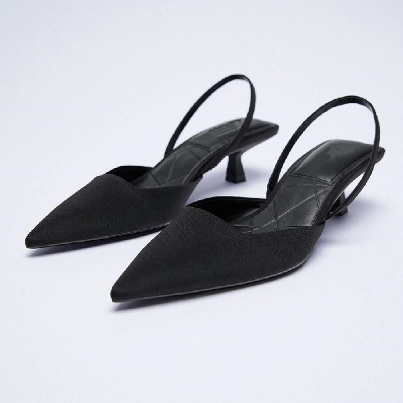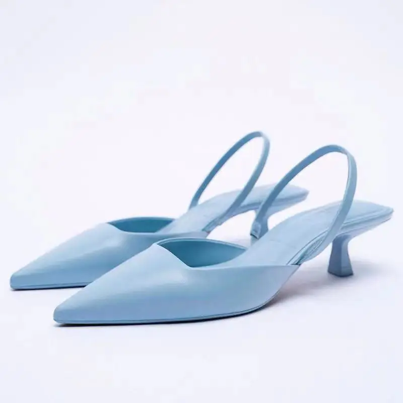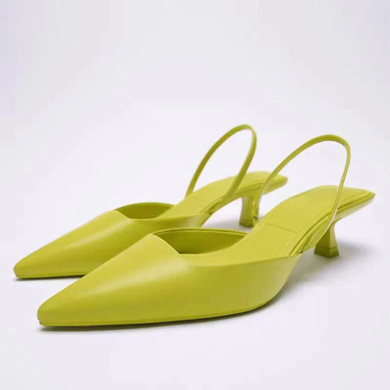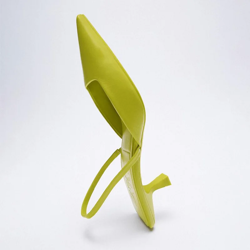 Женские босоножки без задника с острым носком, на среднем каблуке