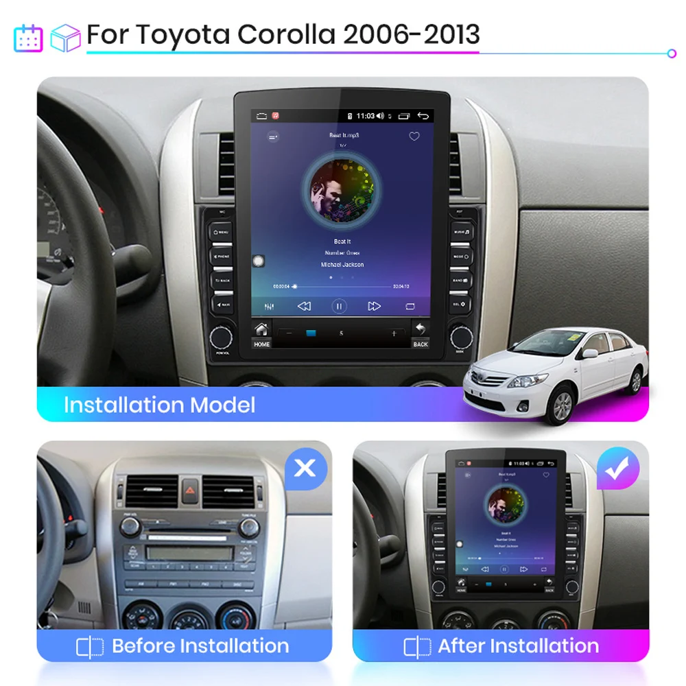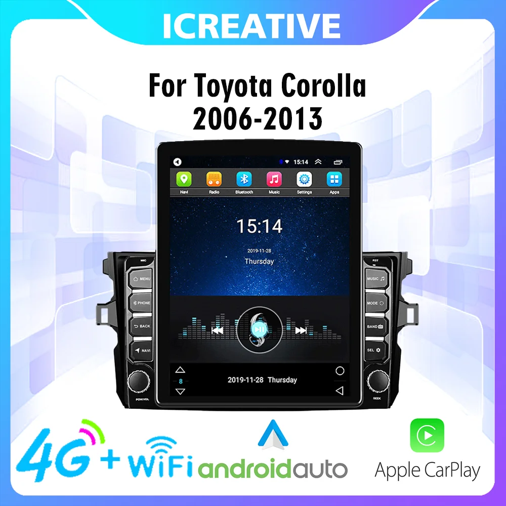 CarPlay Автомагнитола Магнитола Автомобильный мультимедийный плеер, стерео-система под управлением Android, с экраном 9,7 дюйма, с GPS Навигатором, для Toyota Corolla 2006-2013, типоразмер 2 Din 2 дин андройд Аудио