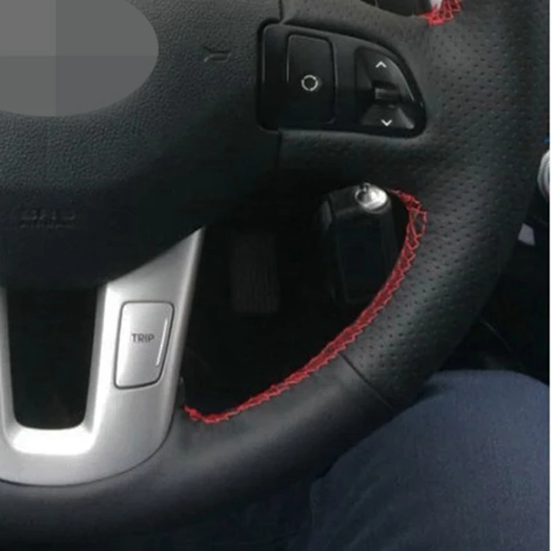 Черный чехол рулевого колеса автомобиля из искусственной кожи для K...