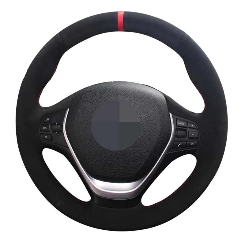 Мягкая черная замша красный маркер чехол рулевого колеса автомобиля...