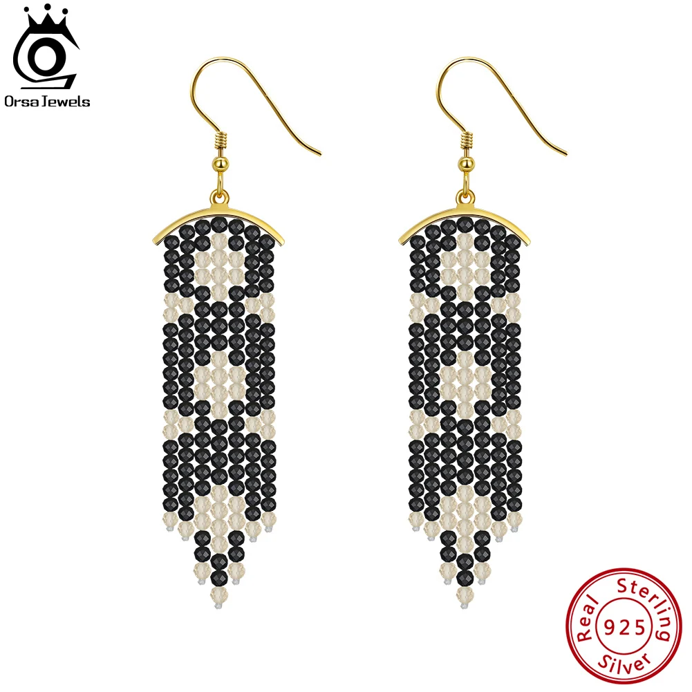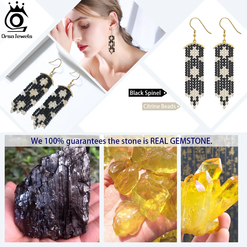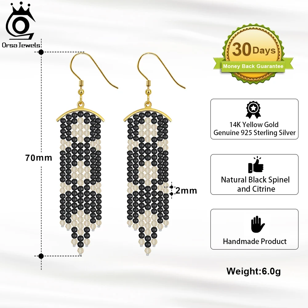 ORSA JEWELS серьги ручной работы из натуральной черной шпинели и цитрина, серьги-капли из стерлингового серебра 925 пробы для женщин, ювелирные изделия GME17