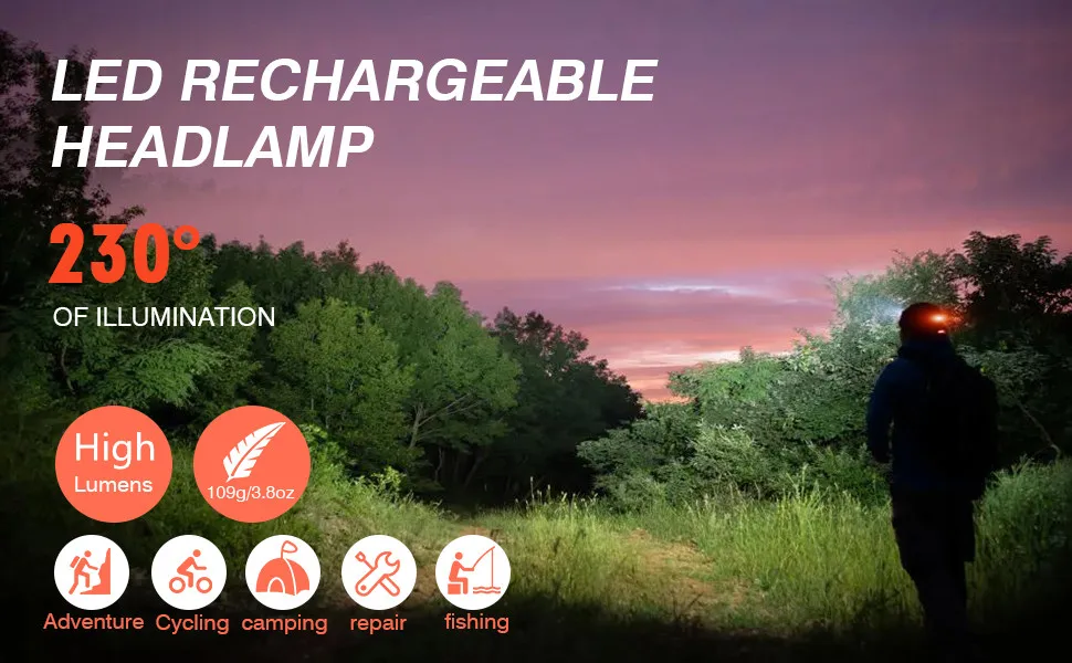 Светодиодный налобный фонарь флэш-светильник для бега, кемпинга, чтения, рыбалки, охоты, обувь для прогулок, бега, прочный светильник Вес головной светильник s аккумуляторы входят в комплект