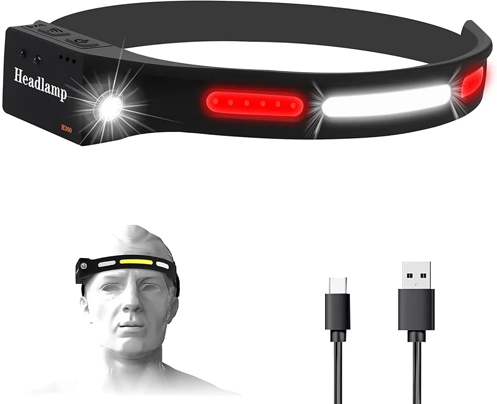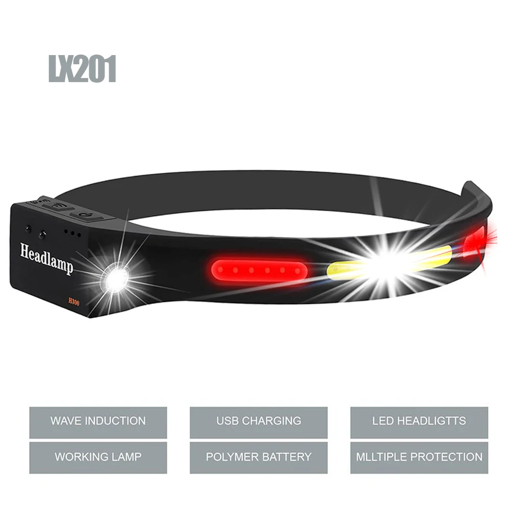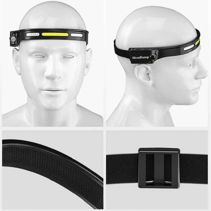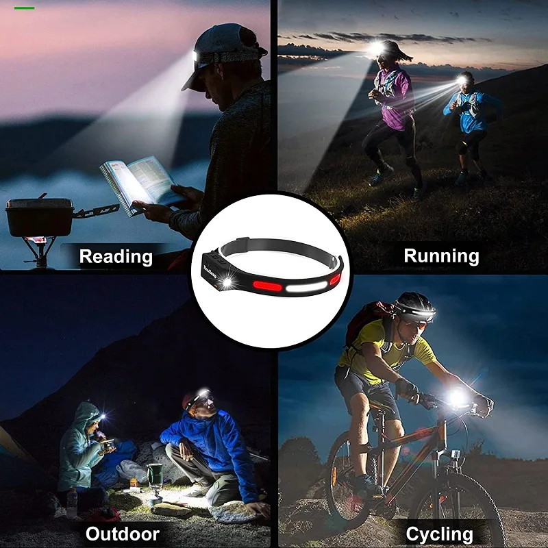 Светодиодный налобный фонарь Pocketman COB, водонепроницаемый Головной фонарь со встроенным аккумулятором и датчиком движения, зарядка через USB