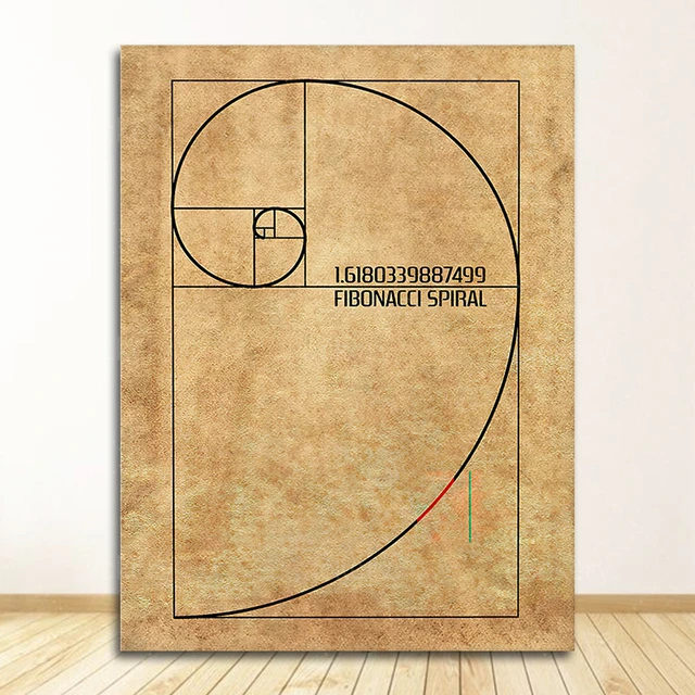 Спираль Фибоначчи патент винтажный схема подарок идея научный Декор офис обучение Декор Искусство Холст Картина Золотое соотношение постеры