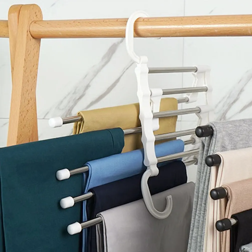 Вешалка для брюк 5-в-1, многофункциональная портативная Вешалка из нержавеющей стали для одежды, брюк, курток, органайзер для хранения, экономия места