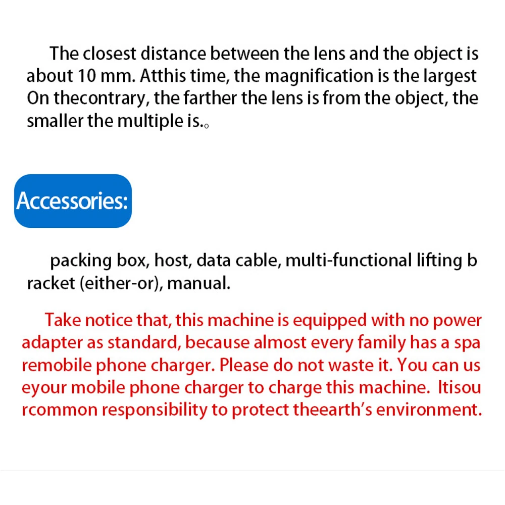 4,3-дюймовый ЖК-дисплей экран G1000 микроскоп, кронштейн может быть поворачивается в соответствии с вашими требованиями, в то время как объектив поддерживает 1-1000X с непрерывным масштабированием. Это определенно может быть прекрасным помощником для вашей повседневной работы.Особенности:Это цифровой микроскоп непрерывного зума, и он имеет широкий спектр наблюдений. От 1 до 1000 раз увеличения, вы всегда можете найти подходящее несколько, чтобы увидеть объект.Увеличение: 1-1000 раз система непрерывного усиления.Видео можно сохранить на флэш-карту памяти (карта не входит в комплект).Расстояние объекта: от 10 мм до бесконечности (различные расстояния объекта соответствуют различным многоточечным).Встроенный литиевый аккумулятор может работать непрерывно в течение 4-6 часов.15 языковых систем: английский, испанский, русский, корейский, японский, тайский, иврит, Португалия, немецкий, французский, Италия, Турция, Польша, традиционный китайский и упрощенный китайский.Он подходит для широкого спектра отраслей: контроль качества различных типов заводов, учебные пособия для различных предметов, наблюдение за кожей и волосами, развитие детских интересов и увлечений, идентификация ювелирных изделий и алмазов, печатных плат, точного оборудования, биологии, минералов, печати, ткани, антиквариата.Этот продукт был улучшен по проблеме высокого отражения, это цифровой микроскоп, который может регулировать угол.Эта машина оснащена 8 яркий светодиодный. Изменение температуры цвета в зависимости от погодных условийХарактеристики:Материал: АБС + металлЦвет: черный + серебристыйМатериал кронштейна: Алюминиевый пластик, металл (опционально)Пиксели: 8 миллионов пикселейДисплей экран: 4,3 дюйма ЖК-дисплей ДисплейУвеличение: 1-1000 раз система непрерывного усиленияВидео можно сохранить на флэш-карту памяти (пожалуйста, используйте скорость карты класса 10, карта не включена.)Расстояние объекта: от 10 мм до бесконечности (различные расстояния объекта соответствуют различным размерам.)Аккумулятор: 1 * литиевая батарея, 2500 мАч (в комплекте)Время работы: 4-6 часовВремя зарядки: 6-8 часов15 языковых систем: английский, испанский, русский, корейский, японский, тайский, иврит, Португалия, немецкий, французский, Италия, Турция, Польша, традиционный китайский и упрощенный китайский.Светодиодный светильник бусы Количество: 8 яркий светодиодный светильник бусиныРазмер посылка: 210*170*90 мм/8,3*6,7 * 3.5inПосылка Вес: 725 г/1.6lbИнформация об эксплуатации машины:Качество изображения: 1 м, 2 м, 3 Мп, 5 м, 6 м, 8 мЦиклическая Съемка камеры: 3 минуты, 5 минут, 10 минутБаланс белого: автоматический, солнечный свет, облачно, Вольфрамовая Лампа накаливания, люминесцентная лампаКомпенсация экспозиции: 2 + 1 + 0 -1 -2Отметка времени: вкл/выклНастройка времени: год, месяц и деньАвтоматическое выключение: выключение, 3 минуты, 5 минут, 10 минутЯзык: английский, испанский, русский, корейский, японский, тайский, иврит, Португалия, немецкий, французский, Италия, Турция, Польша, традиционный китайский, упрощенный китайскийЧастота переменного тока: 50 Гц/60 ГцАвтоматическое выключение экрана: выключено, 3 минуты, 5 минут, 10 минутФормат: ок, отменаСброс системы: да/нетУпаковочный лист:1 * микроскоп G10001 * кронштейн1 * кабель для передачи данных1 * Руководство пользователя