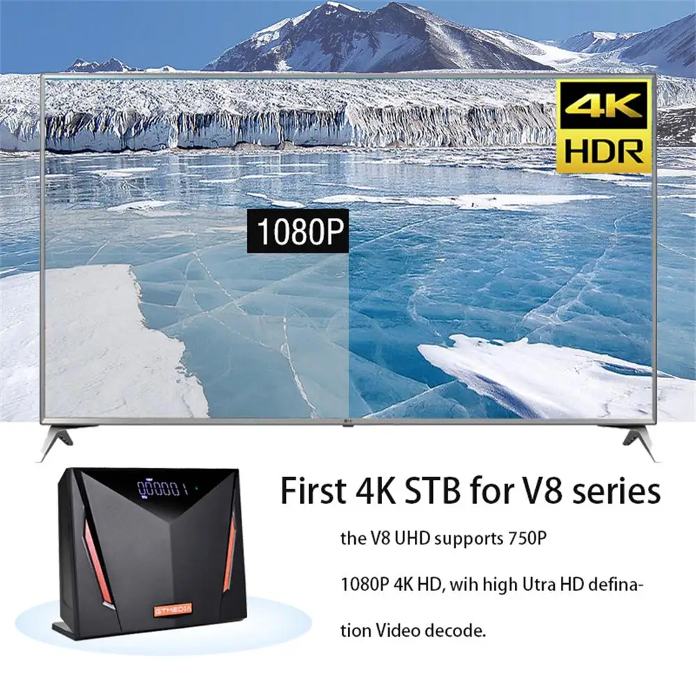 V8 UHD-это первый спутниковый ресивер 4K, разработанный GTMEDIA в 2020 году. Как последний флагман серии V8, ее производительность и система намного лучше, чем другие коробки серии V8. Он имеет крутую форму и высокую производительность, это ваш лучший выбор, чтобы смотреть фильмы и жить