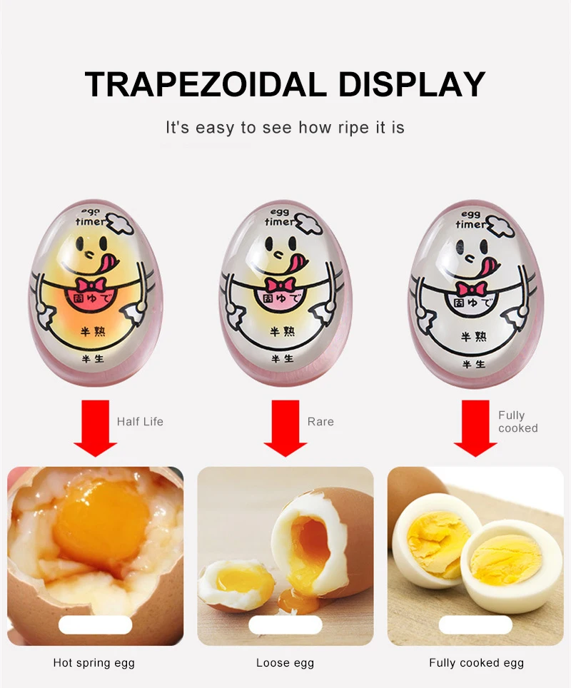 Gewoon zet het ei timer met uw ei in het water, we kunnen weten de conditie van uw ei als de timer kleur verandert, ei timer donkerder als eieren koken.