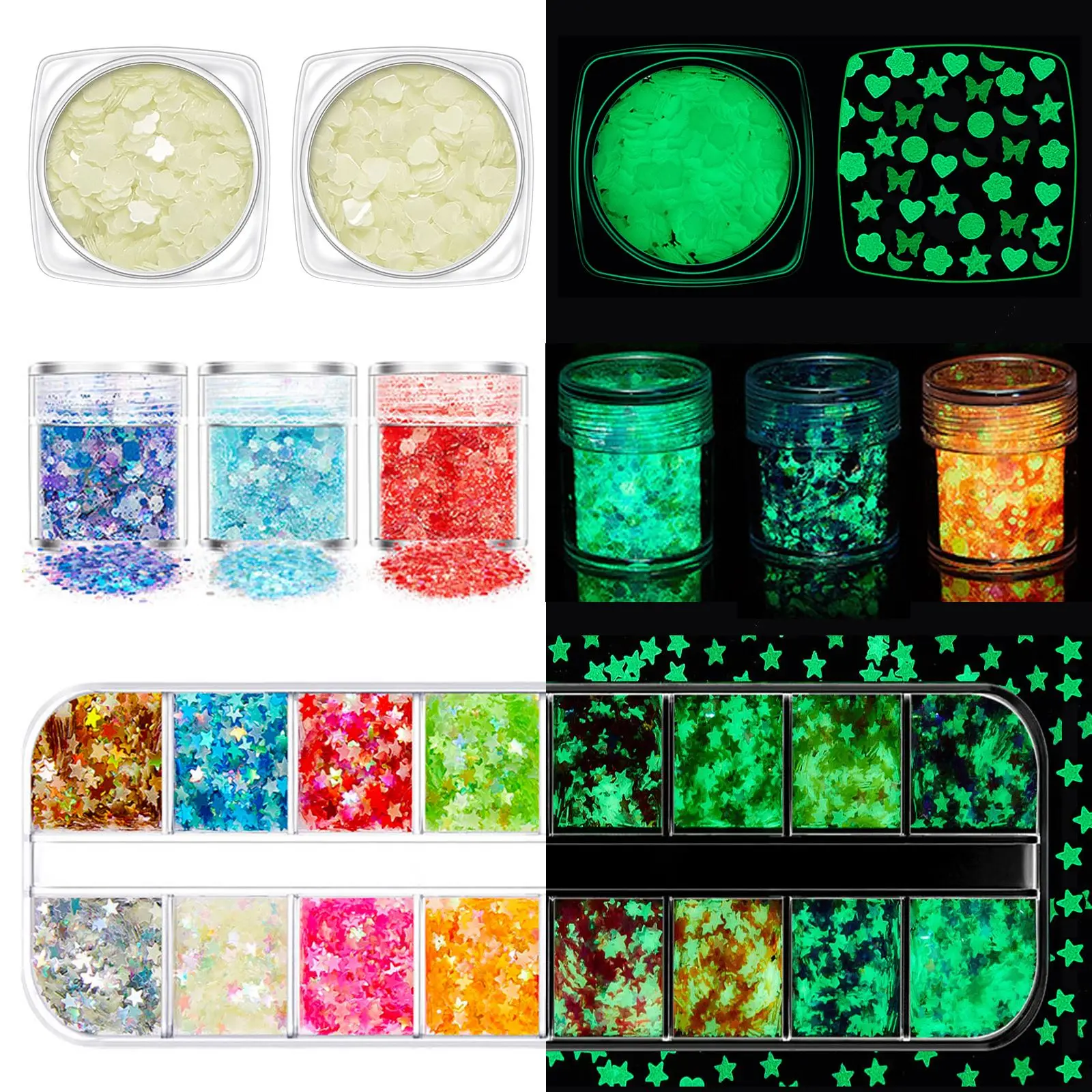 Светящиеся блестки, блестящая эпоксидная смола, наполнение для творчества, украшение для ногтевого дизайна, изготовление ювелирных изделий, неоновые флуоресцентные блестки в темноте