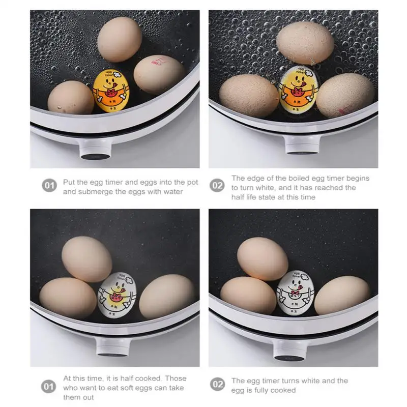 Gewoon zet het ei timer met uw ei in het water, we kunnen weten de conditie van uw ei als de timer kleur verandert, ei timer donkerder als eieren koken.