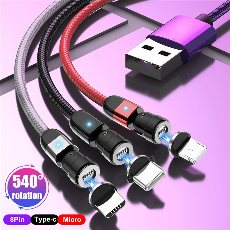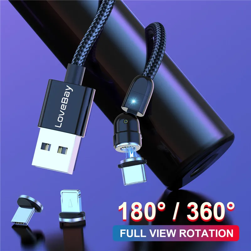 Lovebay 540 вращающийся магнитный usb-кабель Type-C Micro кабель для быстрой зарядки для iphone Huawei зарядный шнур провод для Samsung Xiaomi