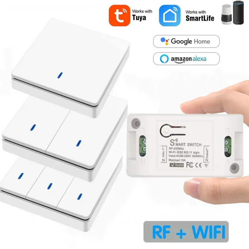 Wi-Fi мини-переключатель Tuya Smart Life, приложение, кнопка, выключатель света RF 433 МГц, настенная панель, релейный модуль сделай сам, таймер Google Home Alexa