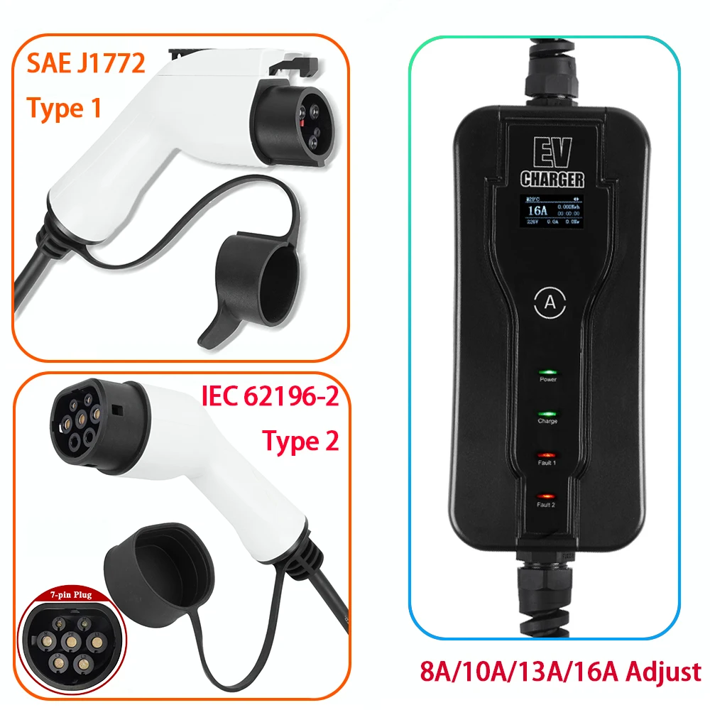 Способ использования:Пуговица круглой формы «А» предназначена для регулировки тока. Слегка коснитесь кнопки, чтобы изменить ток. Когда вы регулируете ток, штепсельная Вилка питания должна быть всегда подключена, штепсельная вилка типа 1 (SAE J1772) должна быть отключена. Когда вы достигнете нужного тока, подключите его и начните зарядку.