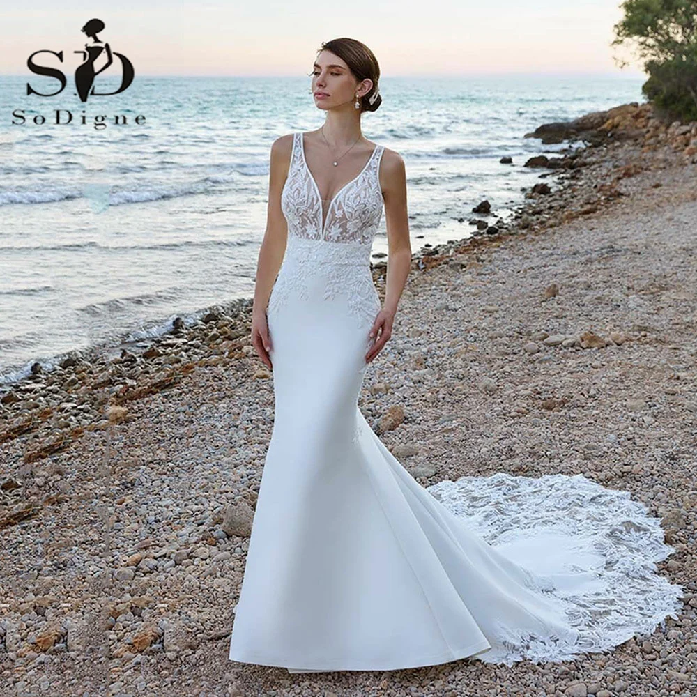 LORIE сексуальные свадебные платья русалки с V-образным вырезом атл...