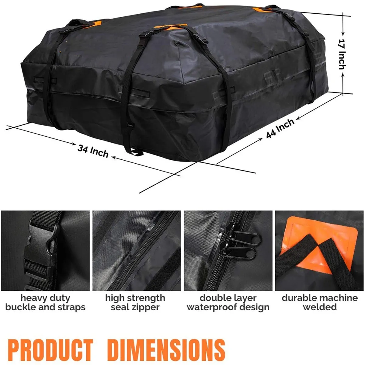 Название: автомобильный грузовой мешок на крышеМатериал: 420D ПВХ брезент с УФ покрытием сеткиЦвет: черныйРазмер: 120x90x44 см (около 475л или 16 кубических футов)