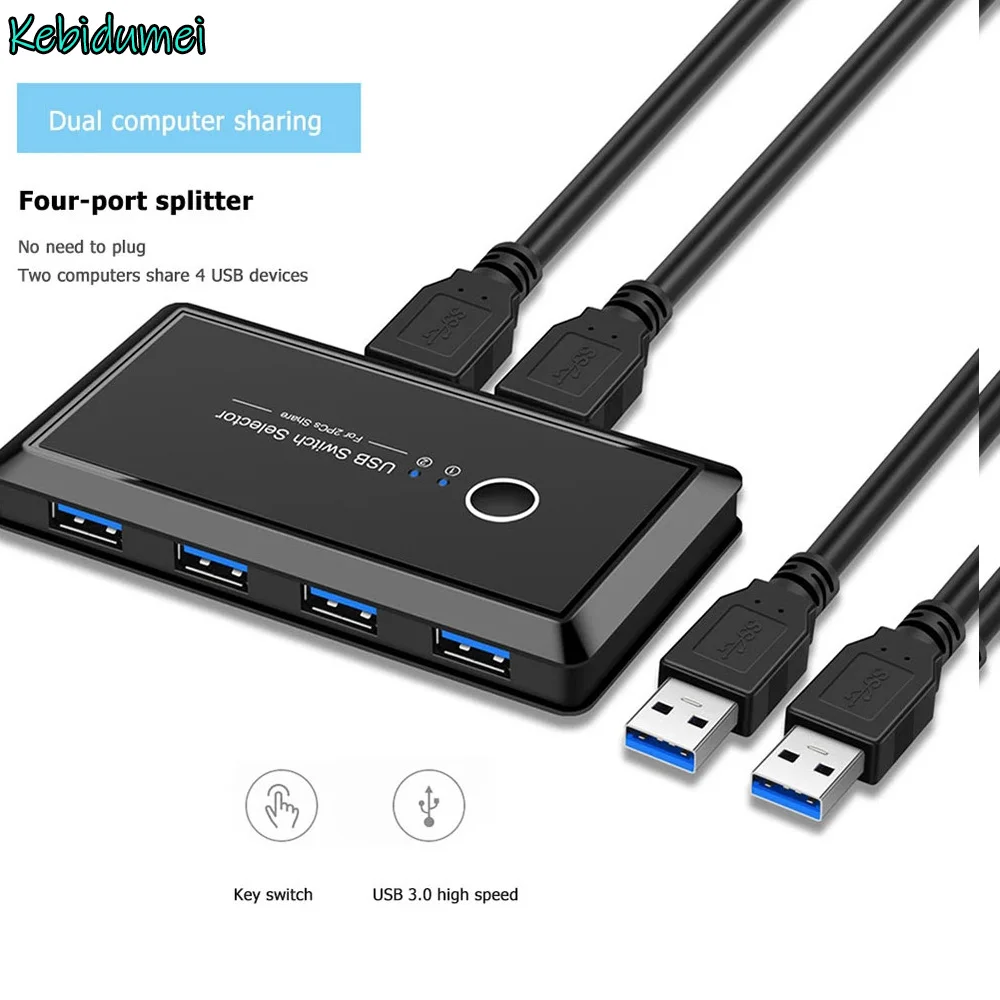 Разветвитель USB Kebidumei 2x4, совместимый с большинством USB-устройств, коммутатор на 4 USB-устройства Share, квм-переключатель USB 3,0 для большинства USB-устройств