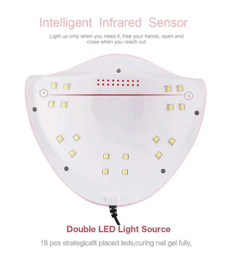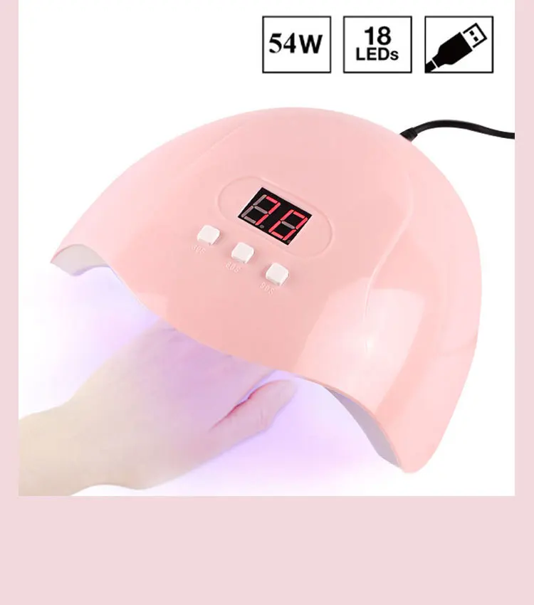 УФ-лампа для сушки гель-лака, 18 светодиодов, 54 Вт