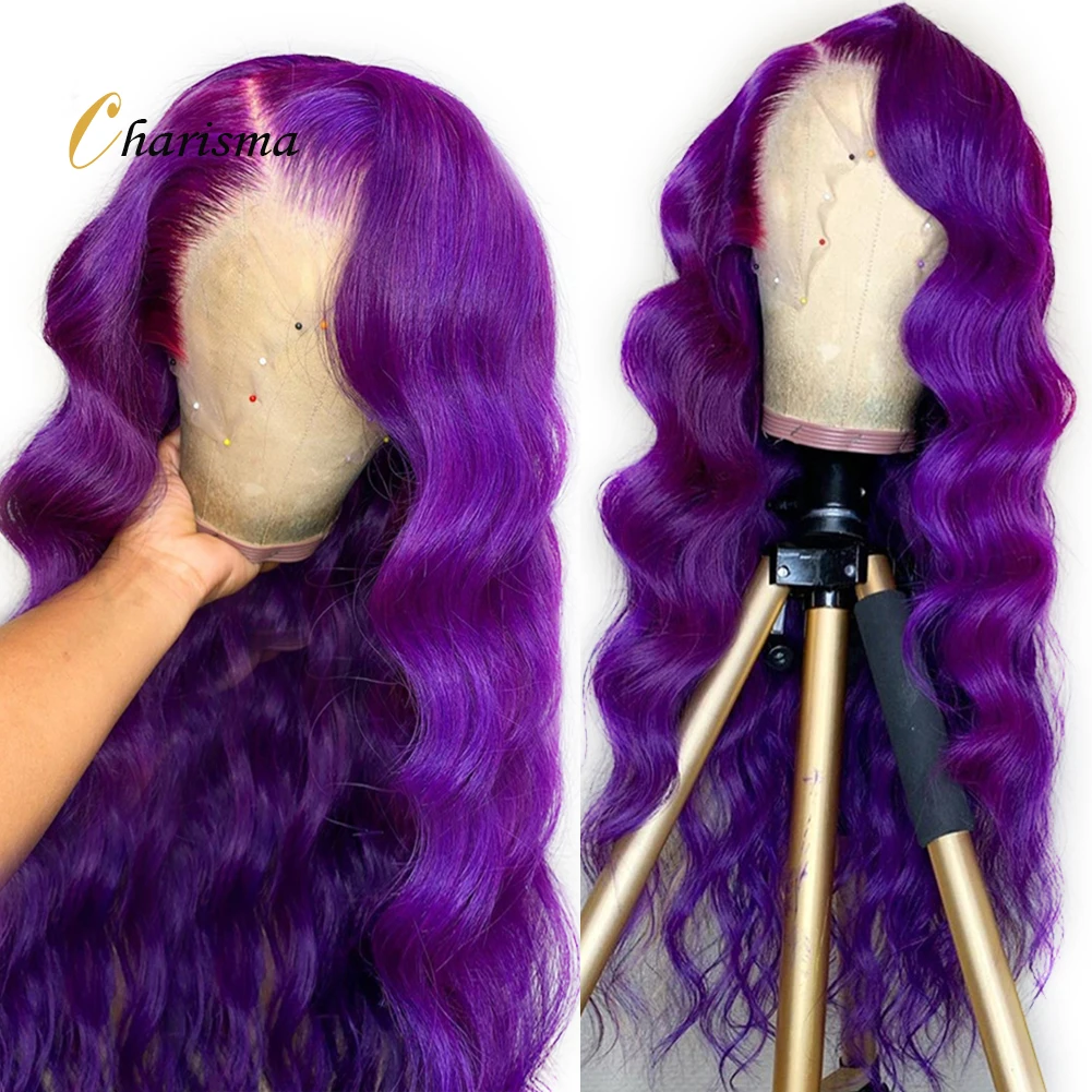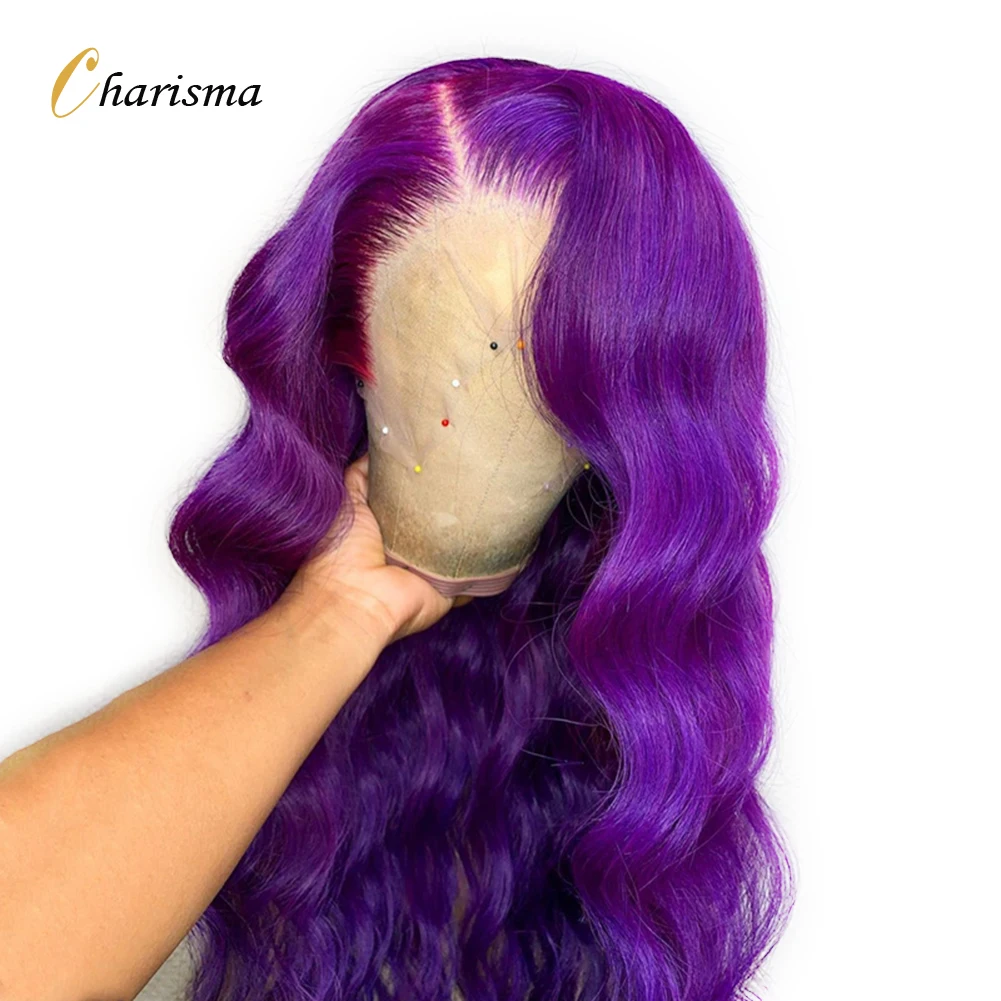 Парик с длинными волнистыми кружевами Charisma, фронтальный парик с боковой частью, синтетические кружевные передние парики для женщин, фиолетовые кружевные парики, натуральный парик для волос