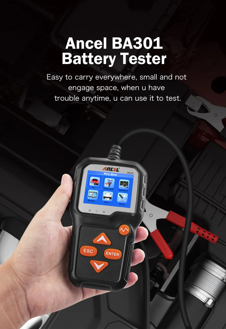 Надежный тестер автомобильного аккумулятора, точный и быстрый-ANCEL BA301 оснащен высококачественными и чувствительными электрическими компонентами и сверхмощными зажимами, обеспечивает быстрый и удобный тест с точными результатами, отображаемыми на ЖК-экране с подсветкой за считанные секунды.
