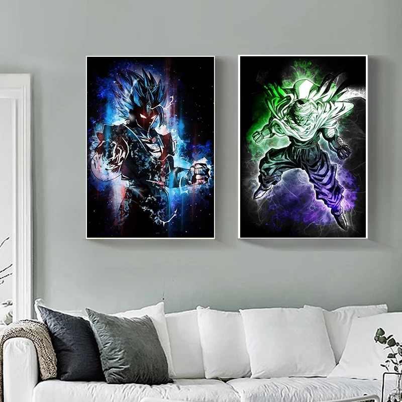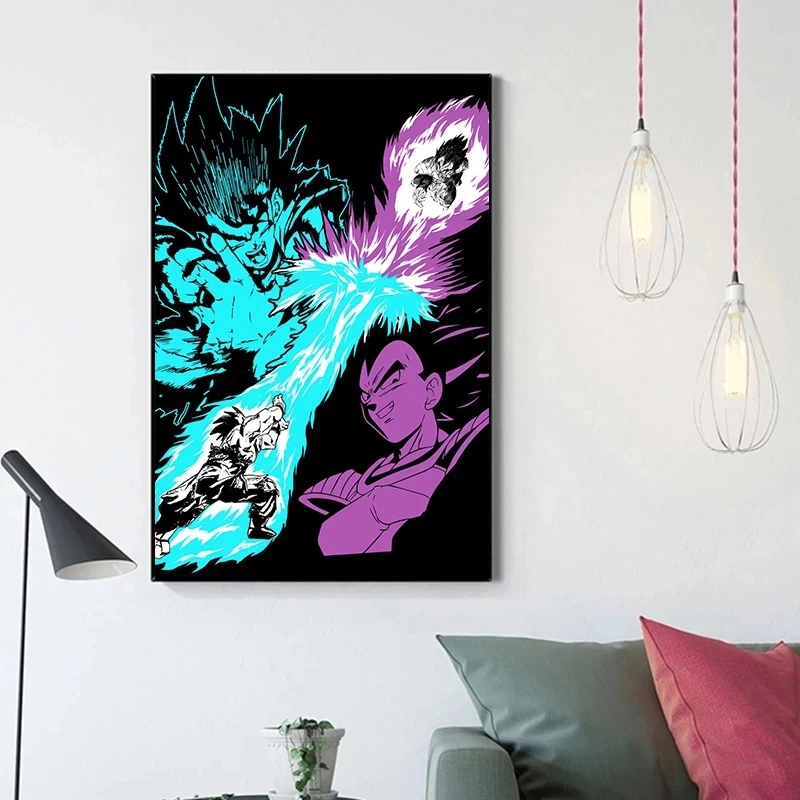 Японское аниме, холст, живопись Гоку, драконий жемчуг Z Vs Вегета, плакаты и принты, Настенная роспись, картина для детской комнаты, домашний декор
