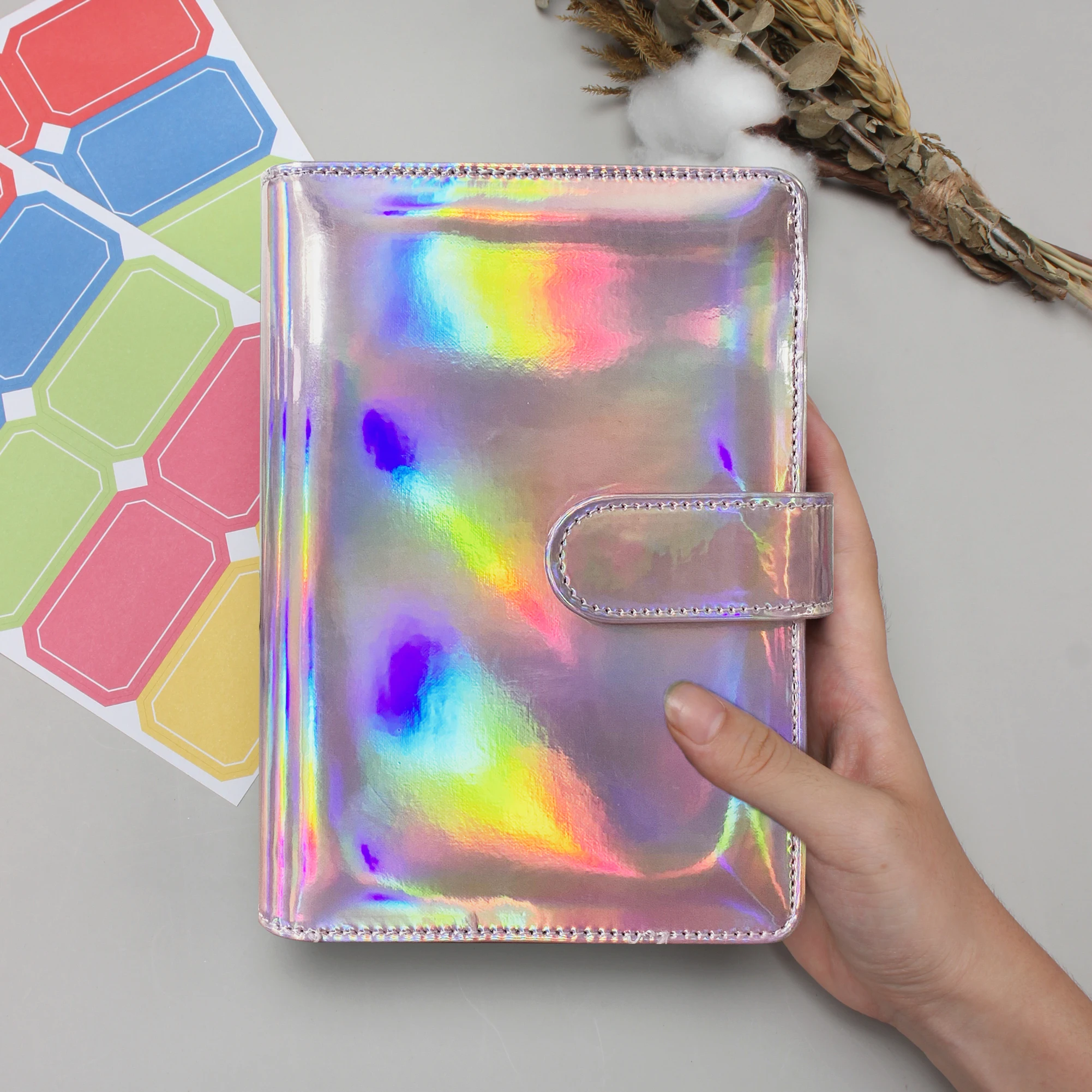 A5 A6 лазерный ежедневник, планировщик, многоразовый чехол для блокнота с 6 отверстиями, папка с карманами из ПВХ на молнии, экономия денег, Бюджетный конверт