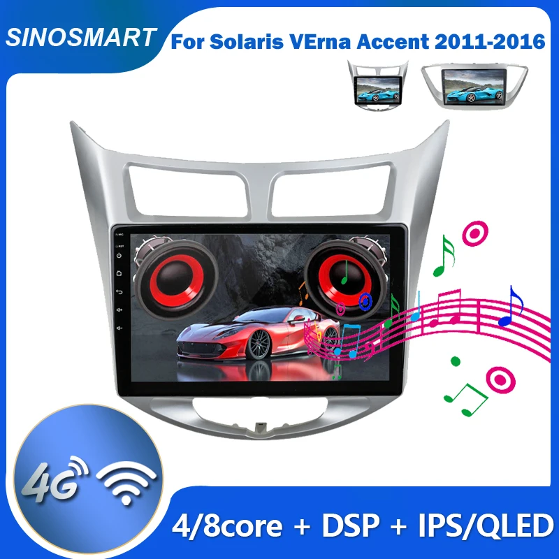 Sinosmart автомобильный радиоприемник с навигацией GPS для Hyundai Solaris Verna Accent 2011-2016 2din 2.5D IPSQLED экран 8 ядер, DSP 48EQ