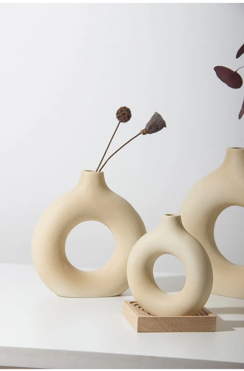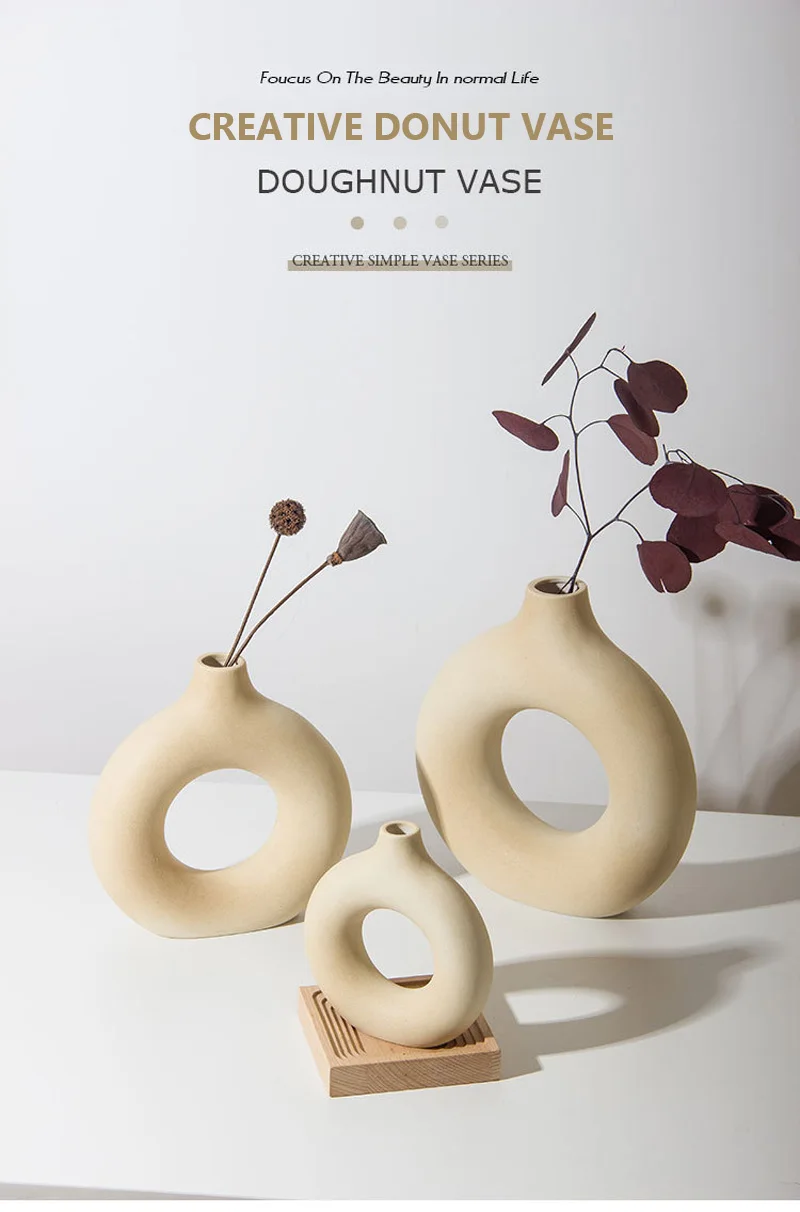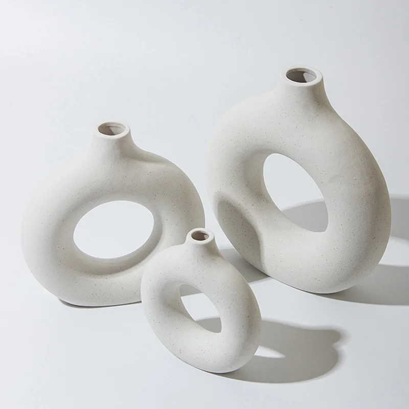 Круглая керамическая ваза в скандинавском стиле с отверстиями, пончики, цветочные аксессуары, аксессуары для офисного стола, гостиной, декор интерьера