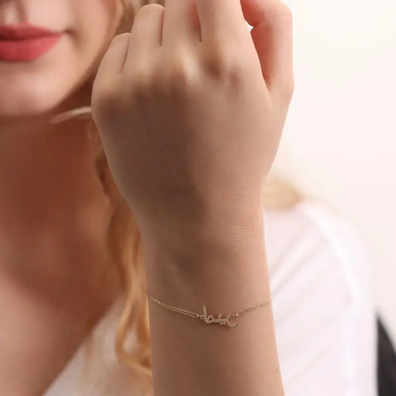 Индивидуальный арабский именной браслет из нержавеющей стали, двойная О-цепь, персонализированный именной браслет, ювелирные изделия для женщин, подарки на день рождения