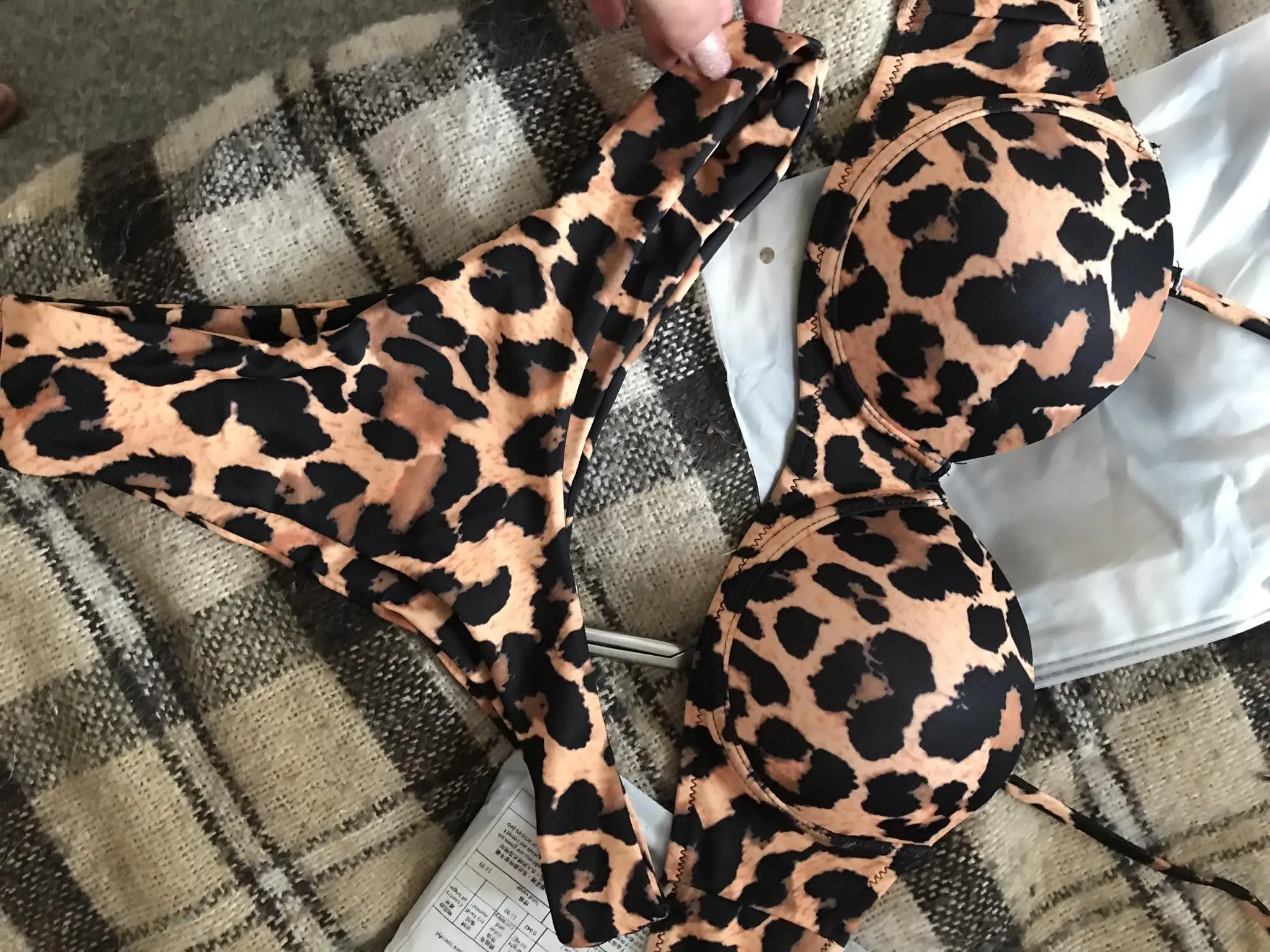Сексуальное женское бикини, Бразильский купальный костюм, комплект бикини с бюстгальтером пуш-ап, купальный костюм из двух предметов, одежда для плавания, пляжная одежда с низкой талией, Леопардовый купальник